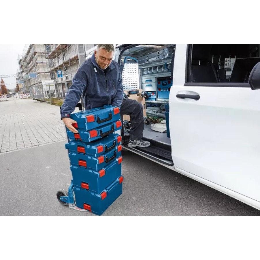 Съвместим с всички модели от серията куфари BOSCH L-BOXX, като може да се свъзва с тях посредством странични закупчалки и по този начин се олеснява пренасянето на вашите инструменти, консумативи и различни принадлежности.